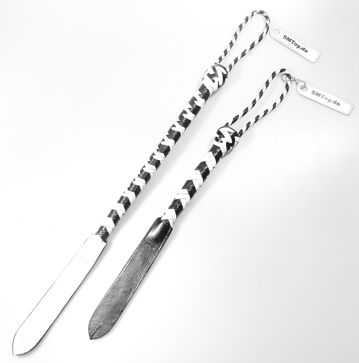 Kurzer Kantschu - Hochwertige Lederpeitsche mit Klatsche 36cm Black-White