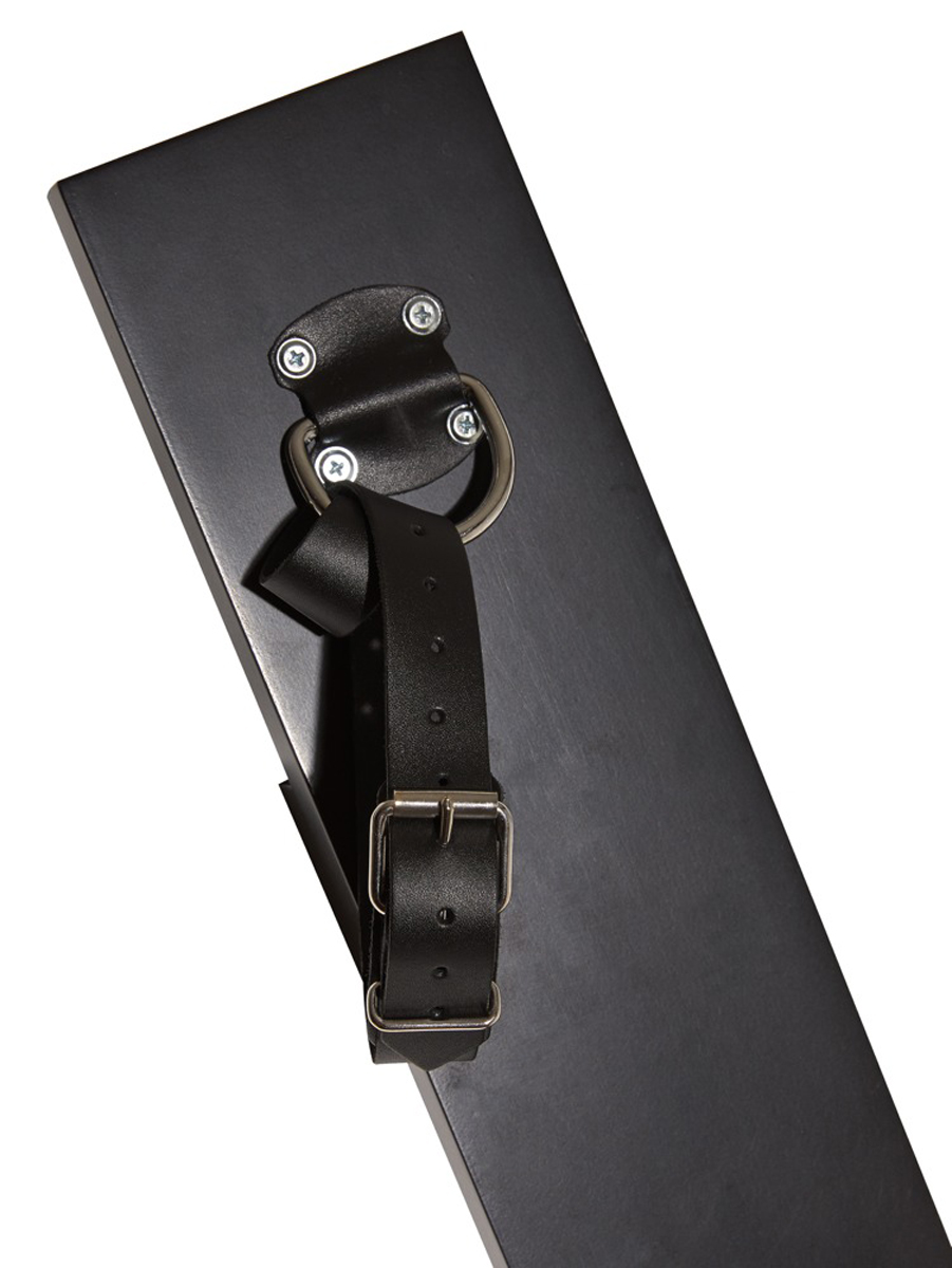 Mit Metallringen sowie vier verstellbaren Leder-Fesselriemen zur Fixierung von Händen und Füßen.