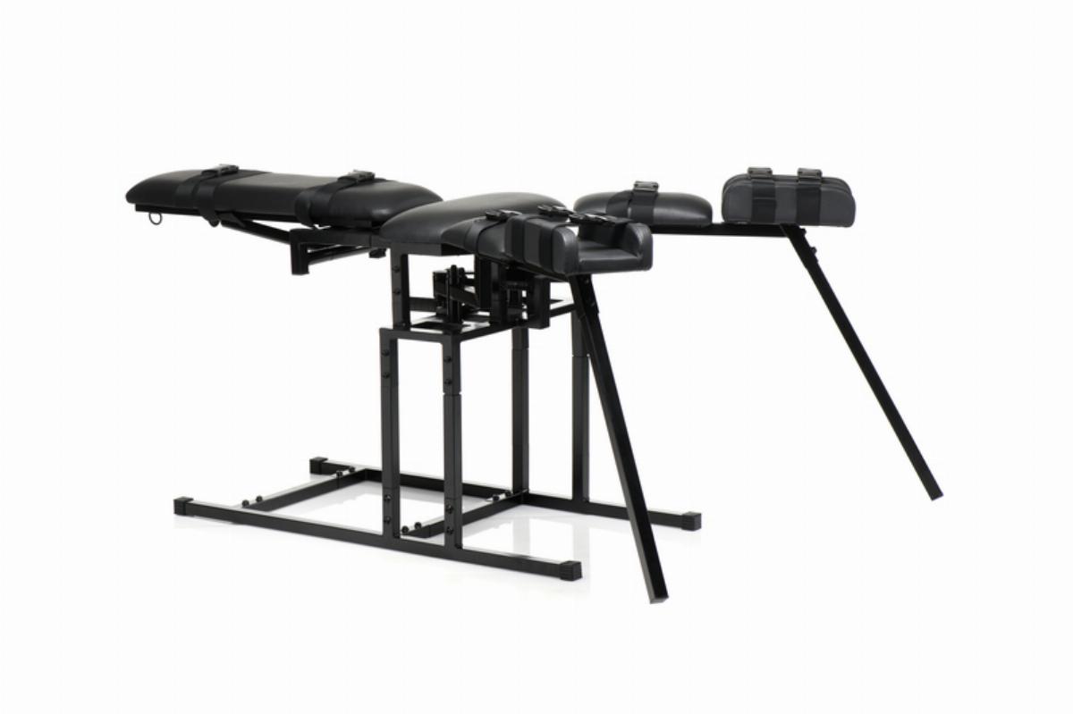 Entworfen, um bis zu 150 kg Gewicht zu tragen, verfügt dieser Stuhl über verstellbare Teile für deine Beine, mit denen du die Höhe und Breite anpassen kannst, sowie eine Rückenlehne, die deinen Partner vom Sitzen in die horizontale Liegeposition bringen kann.