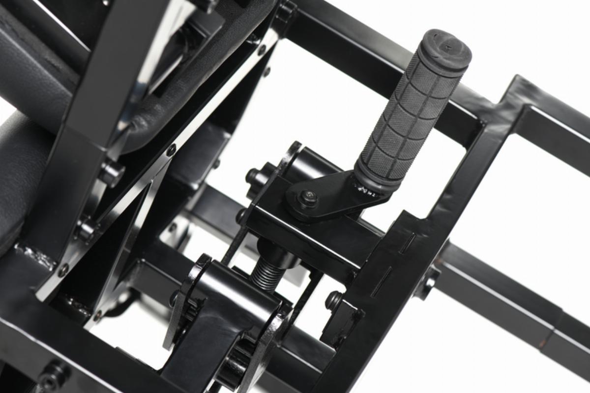 Verwende den Hebel, um die Beinstützen zu verbreitern oder zu verengen, und hebe die Wadenstützen hoch, um die Beine deines Subs hoch in die Luft zu heben.