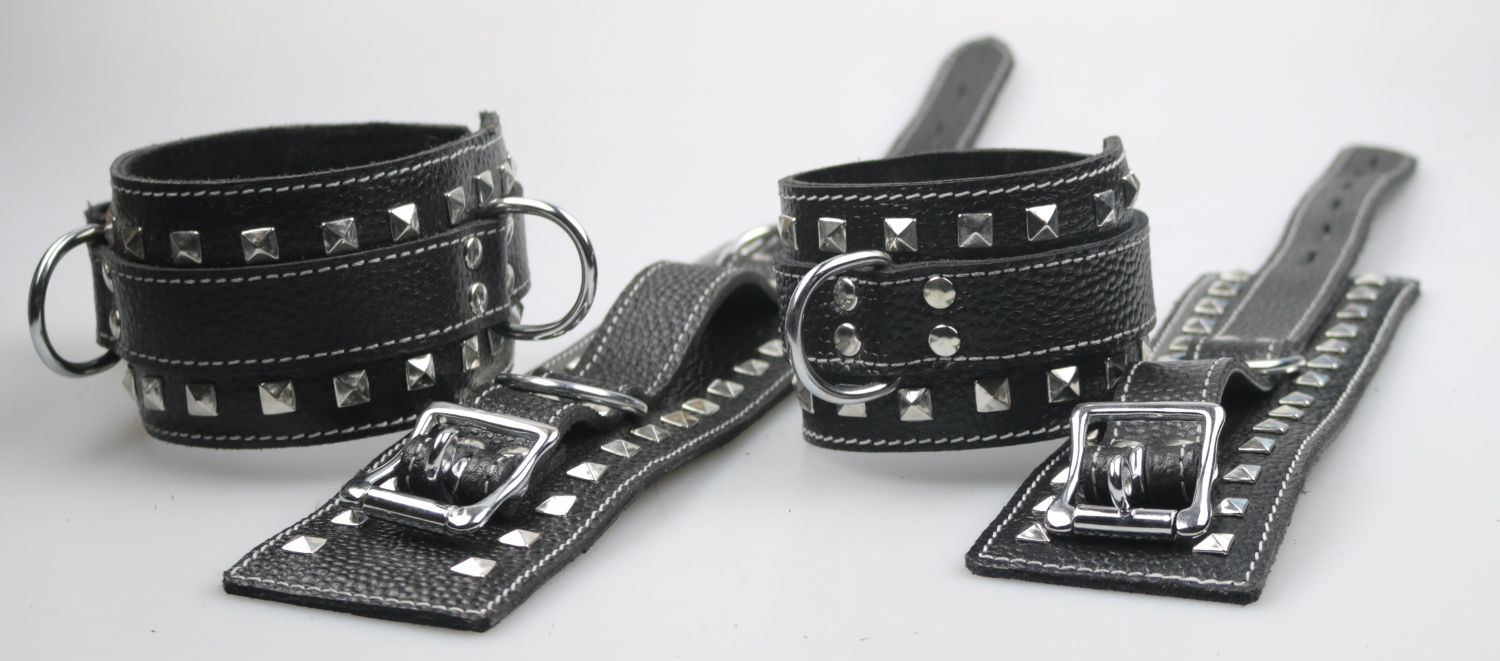 Hand- und Fussfessel mit Nieten und D-Ringen