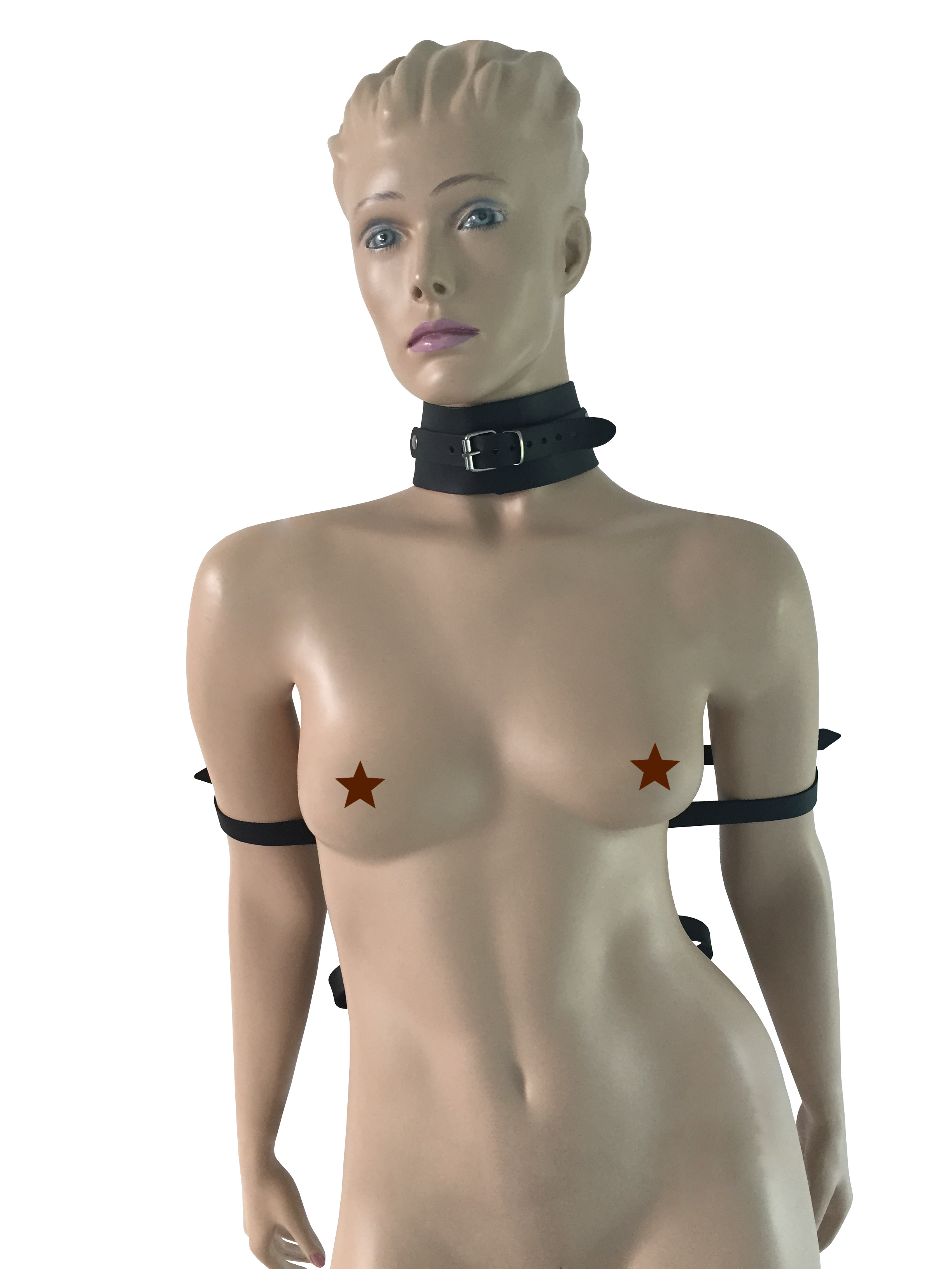 Lederhalsband mit Lederverbindung und Handfesseln