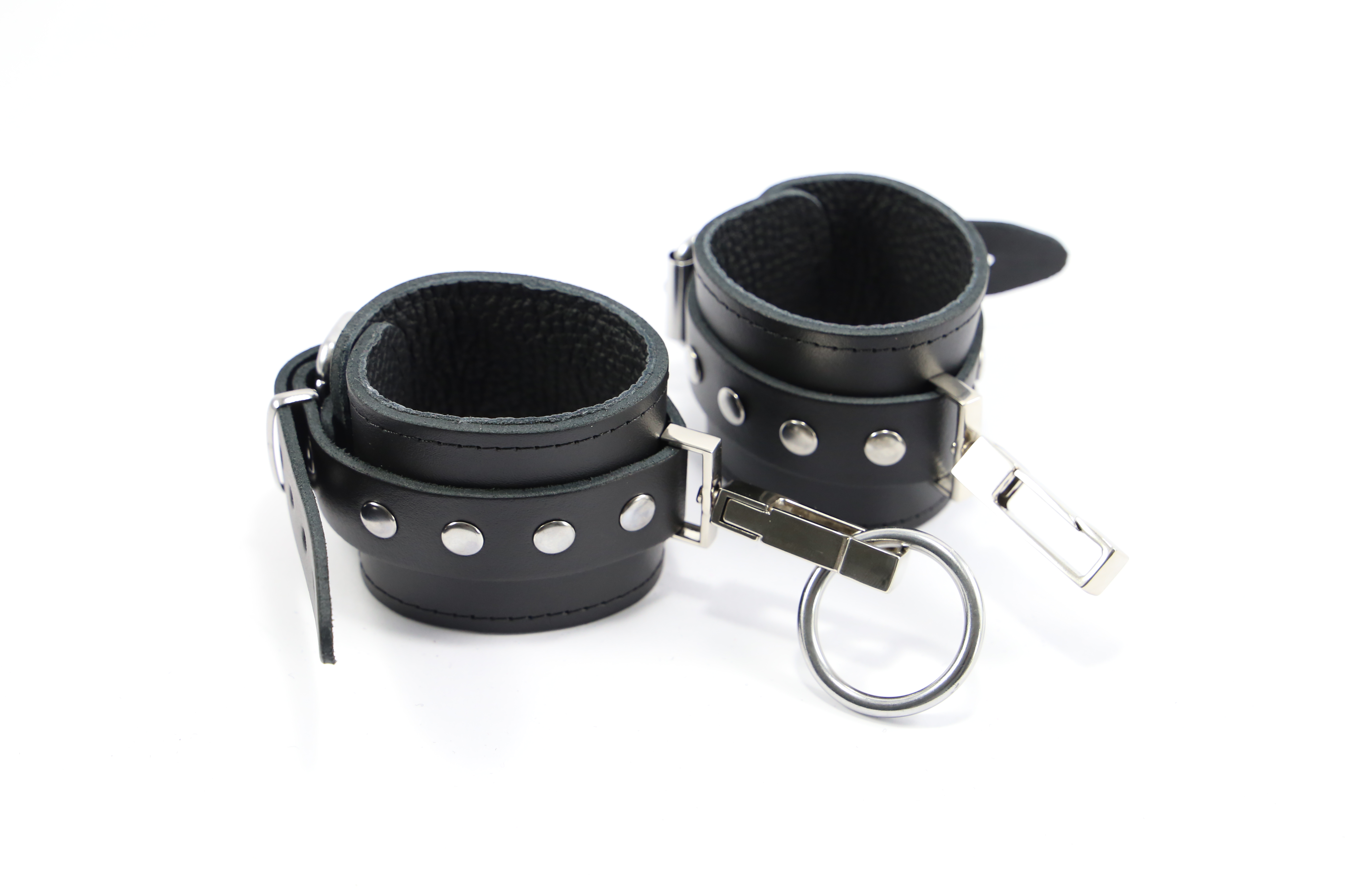 Leder Handfessel schwarz mit großen D-Ringen