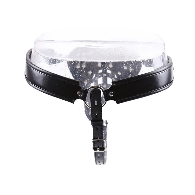 Klare Kontrolle, schwarzer Glanz – ein verstellbarer Herren-Chastity-Gürtel aus PU-Leder mit Frontschloss und atmungsaktiver Cage-Optik.