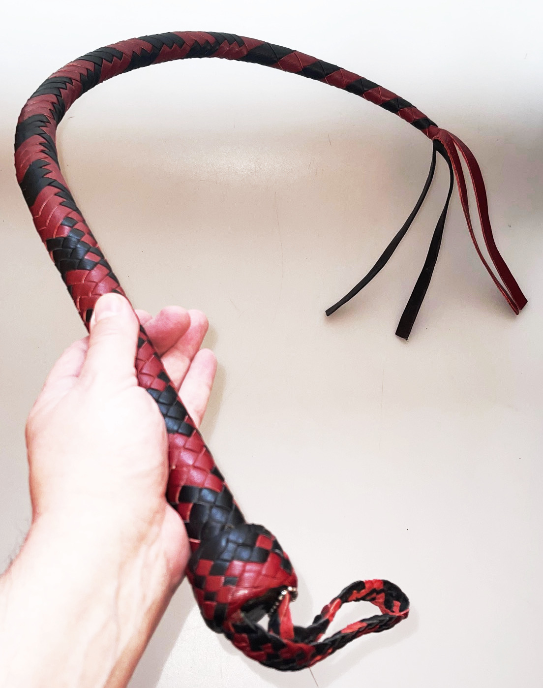 Lederpeitsche mit Karabiner Schwarz/Rot