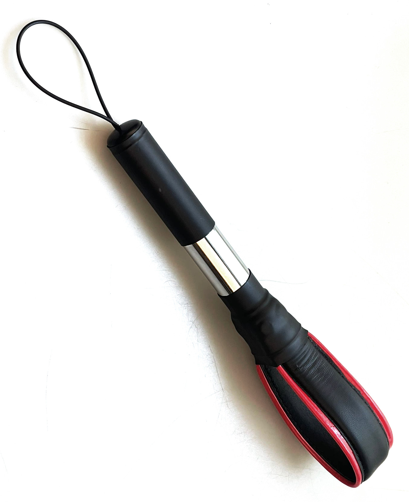 Produktinformationen "Leder-Paddle mit Metallgriff roter Streifen"