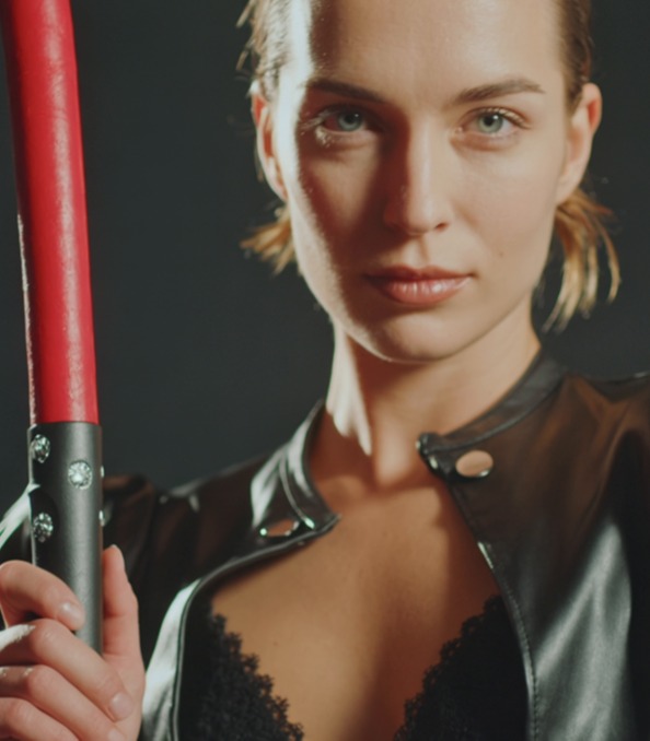Leder Peitsche Quicky - roter Griff, schwarze Streifen