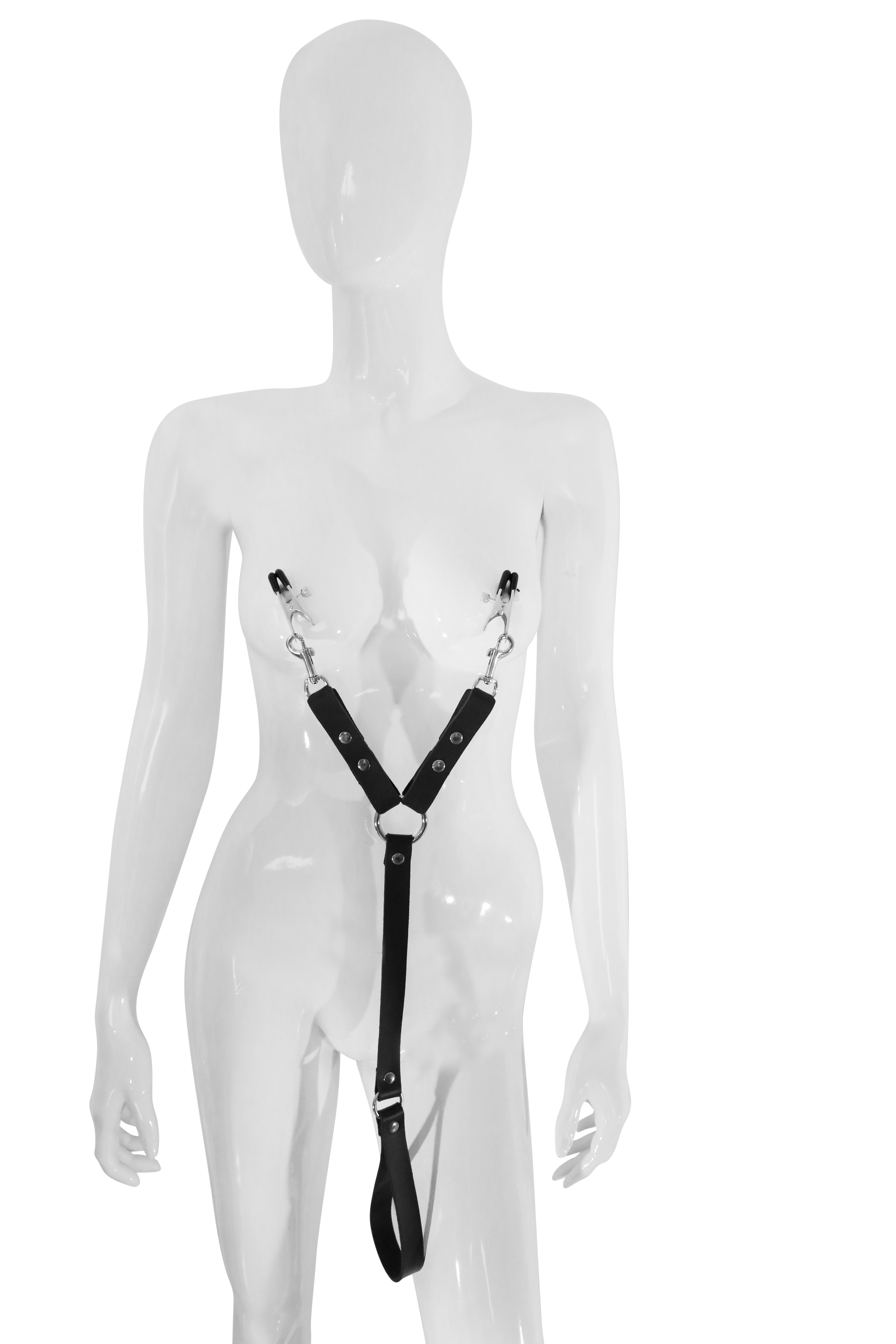 Doppelnippelklammern mit Kette und Ledergriff