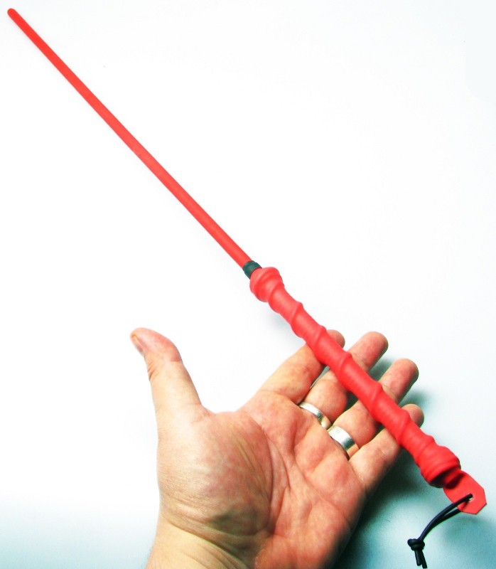 Der gummierte Kunststoffstab liegt sicher in der Hand und entfaltet bei jedem Schlag ein markantes, zischendes Echo – so schnell und präzise wie der Schlag einer Schlange.