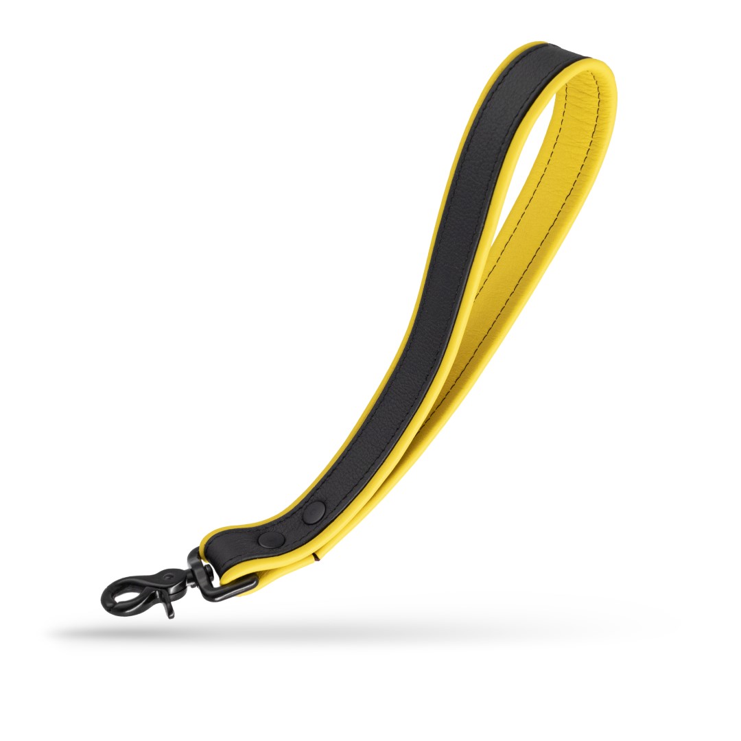 Soft Leder Leine Kurz Schwarz/Gelb